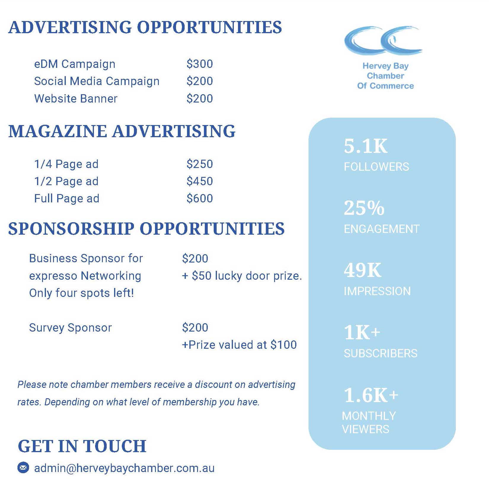 We have some great opportunities to help you advertise out to our members and also our online community.